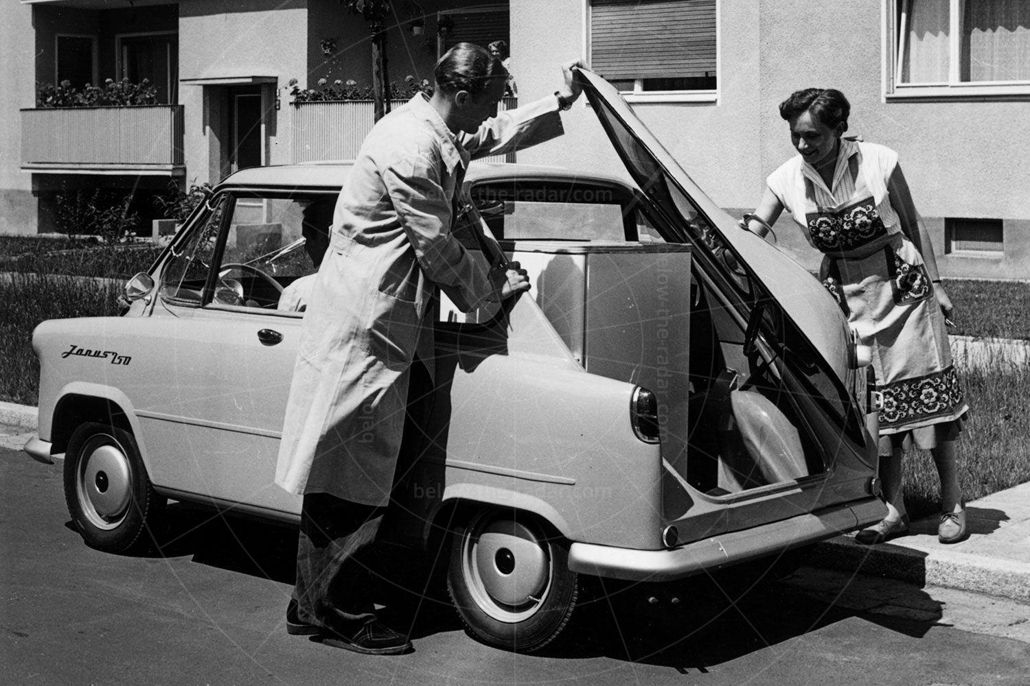 Although the car's concept was especially odd, that didn't stop German motorcyle maker Zundapp from buying the rights to produce the tiny oddball. The result was the Janus, which was named after the Greek god that faced both ways, and which went on sale in 1957 featuring several changes from the Delta's design.